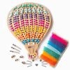 El kit incluye 1 globo para bordar, 1 bobina, 7 lanas de colores, 8 botones de nube, 2 agujas de madera punta redonda. Fabricado en MDF de 3 mm de espesor. El globo mide: 22 cm ancho x 30 cm alto. El color de las lanas puede variar en cada lote. Desde 4 años en adelante.