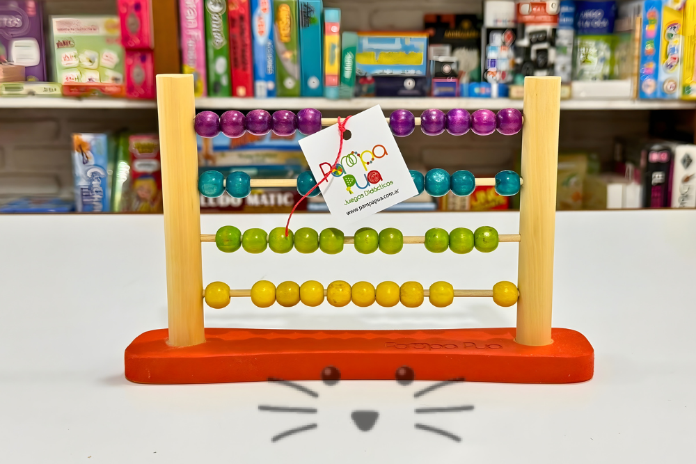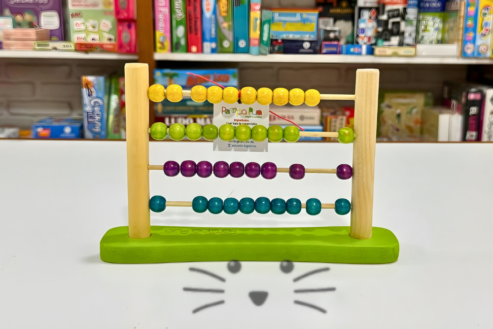 Ideal para introducir a niños y niñas en el mundo de los números a través del juego manipulativo. Sus filas de cuentas de colores invitan a deslizar, agrupar y contar, favoreciendo el aprendizaje activo. Estimula el pensamiento lógico-matemático, la noción de cantidad, el conteo, la coordinación ojo-mano y la motricidad fina. También es un excelente recurso para trabajar clasificación por colores y seriación.