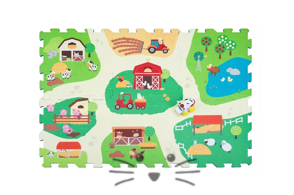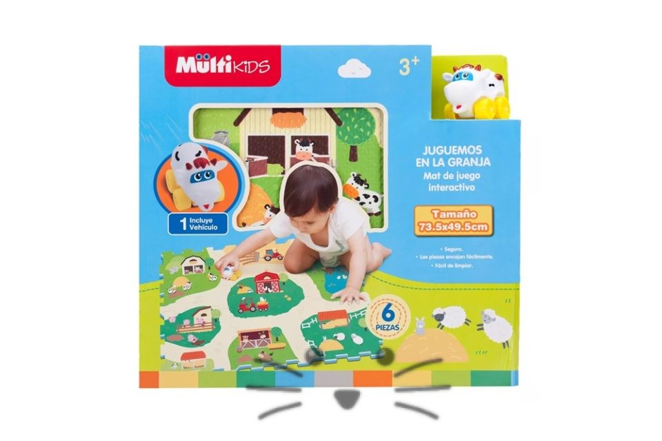 Alfombra Didáctica con hermoso diseño e imágenes de una Granja. Los niños podrán jugar, divertirse e interactuar. Incluyen un simpático vehículo que lo usaran para recorrer la linda granja. Medidas: 6 piezas. Espesor: 10 mm. Tamaño total armado: 73.5 x 49.5cm