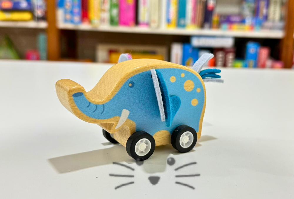 Animalito de madera con ruedas a fricción. Empuja hacia atrás, suelta y observa como corren. Medidas: 10 cm de largo x 4 cm de ancho x 5,5 cm de alto. Edad Sugerida: a partir de 3 años en adelante.