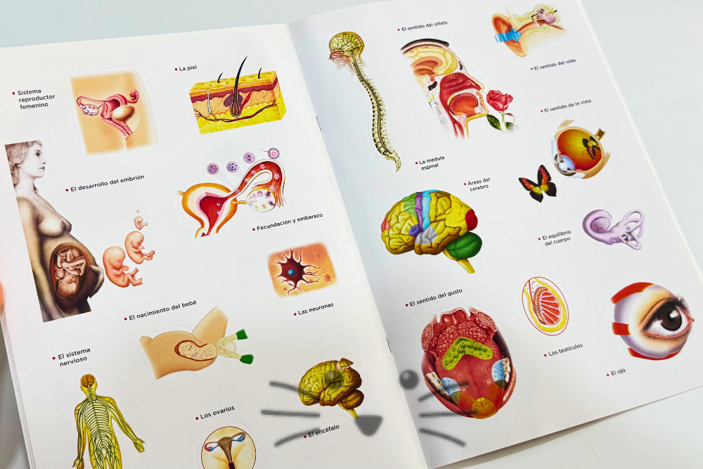 Un libro para aprender mucho sobre los órganos y los fascinantes sistemas que forman nuestro cuerpo. Para completar con stickers como si fuera un álbum de figuritas. Así que mientras se entretienen colocando los stickers donde corresponden, los chicos leen datos y aprenden mucho con las descripciones que se encuentran junto a las ilustraciones. Contiene 8 páginas. Edad Sugerida: a partir de 4 años en adelante.