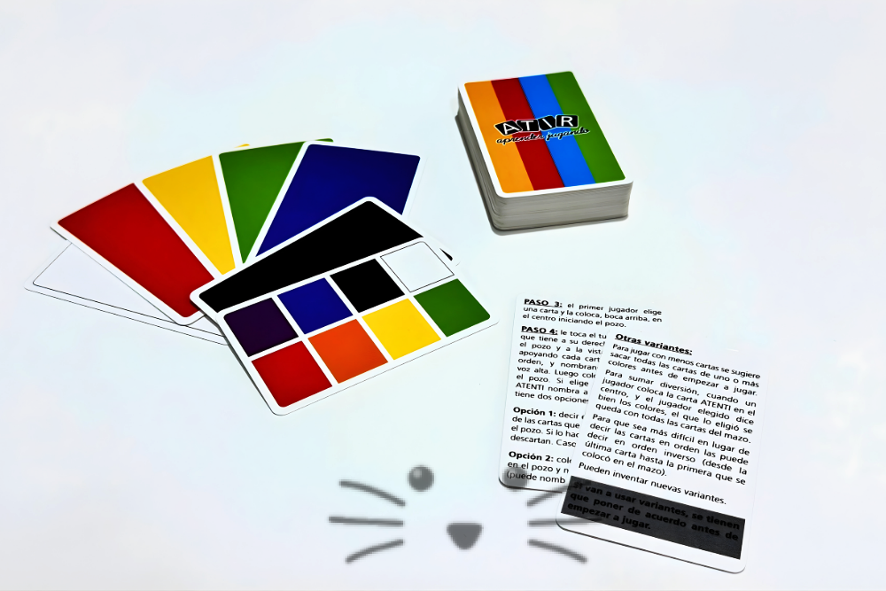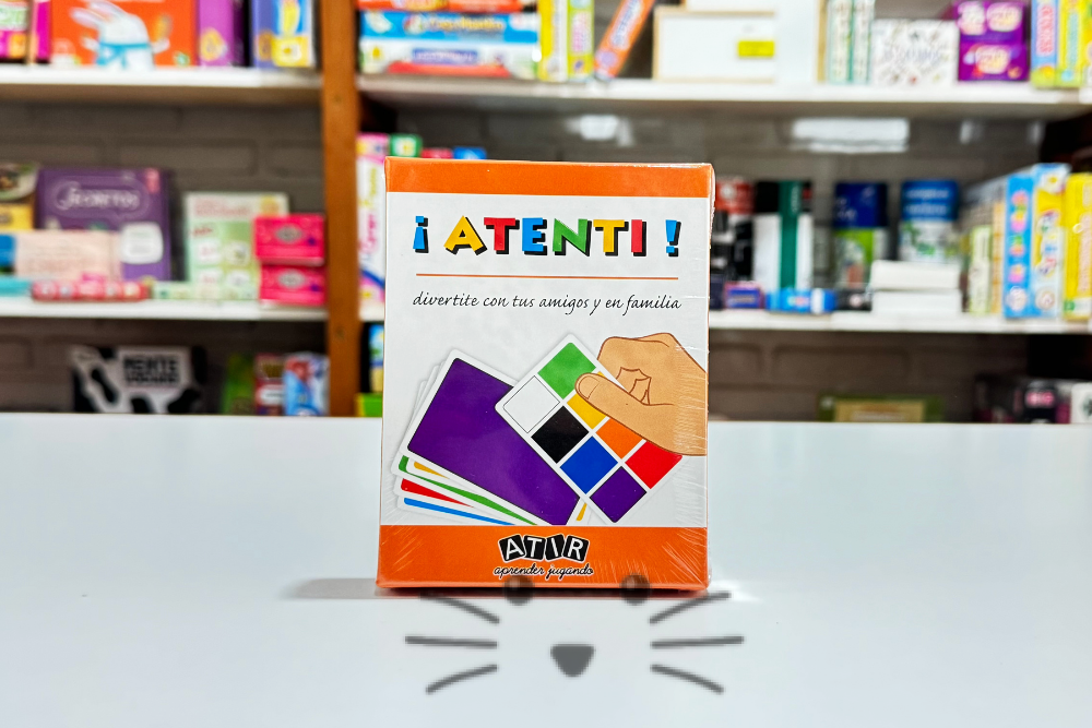 Juego de cartas ágil, divertido y desafiante, ideal para jugar en familia o con amigos. Su dinámica simple invita a grandes y chicos a entrenar la atención, la memoria visual y la velocidad de reacción, mientras comparten un momento de juego entretenido. En ATENTI no gana el más rápido al azar, sino quien logra observar, recordar y responder correctamente a la secuencia de colores que aparecen en las cartas.