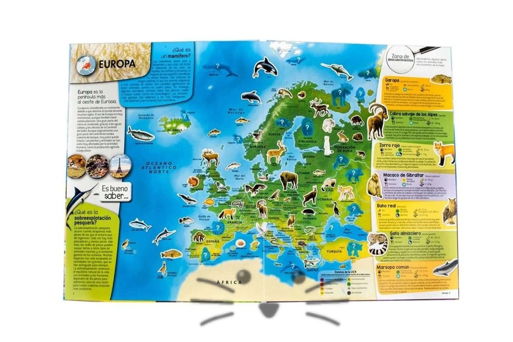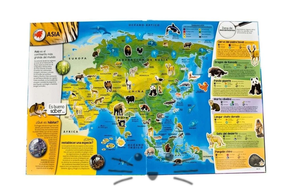 Un viaje alrededor del mundo donde descubrirás datos importantes sobre más de 300 animales peludos, escamosos o emplumados, así como de las mayores amenazas que enfrentan cada día. Encuadernado en tapa dura. Contiene 12 páginas. Medidas: 29 x 35,5 cm. Edad Sugerida: a partir de 8 años en adelante.