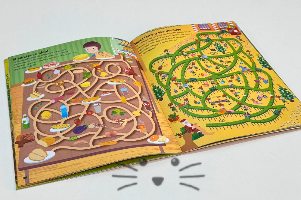 Un libro lleno de caminos, desafíos y sorpresas. Los niños deberán recorrer diferentes laberintos mientras se divierten con escenas ambientadas en diversos lugares. Ideal para estimular la atención, la concentración y la motricidad fina, promoviendo la resolución de problemas y el pensamiento lógico. Sus ilustraciones coloridas y amigables invitan a jugar y aprender al mismo tiempo. Edad Sugerida: a partir de 3 años.