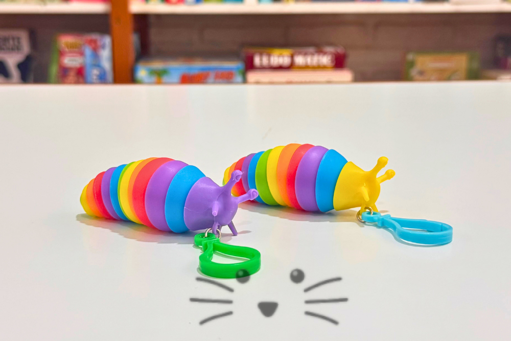 Un juguete simple, colorido y muy relajante que invita a mover, doblar y manipular sin parar. Este gusanito articulado de madera con elástico interno funciona como fidget antiestrés, ideal para acompañar momentos de concentración, juego libre o regulación emocional.