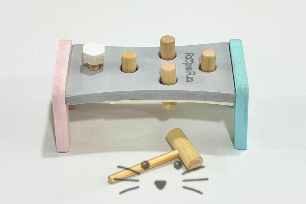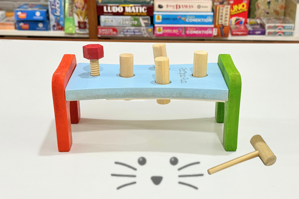 Estimula la motricidad gruesa y libera energía. Contiene: 4 clavos para golpear, 1 tornillo para ajustar y desajustar y 1 martillo. Medidas: 23 cm de largo x 11 cm de alto x 10 cm de ancho.