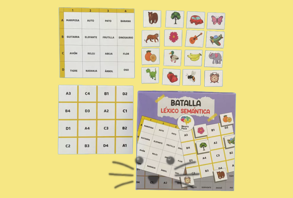 Un juego ideal para estimular el lenguaje, la lectura y el procesamiento cognitivo mientras se juega y se aprende. Si juegan 2 personas, ¡gana quien completa primero su tablero! En modo solitario, se pueden completar los tableros con o sin tiempo para trabajar la velocidad de procesamiento. Incluye adivinanzas para trabajar aspectos semánticos y evocación léxica (disponibles en el manual). Las imágenes pueden colocarse sobre la palabra en etapas tempranas de lectoescritura, o al costado del tablero en etapas más avanzadas. Contenido: 4 tableros de 16 x 15 cm, 32 imágenes de 3,8 x 3,5 cm y manual de instrucciones con adivinanzas. Material: cartón rígido laminado, grueso, duro y súper resistente.