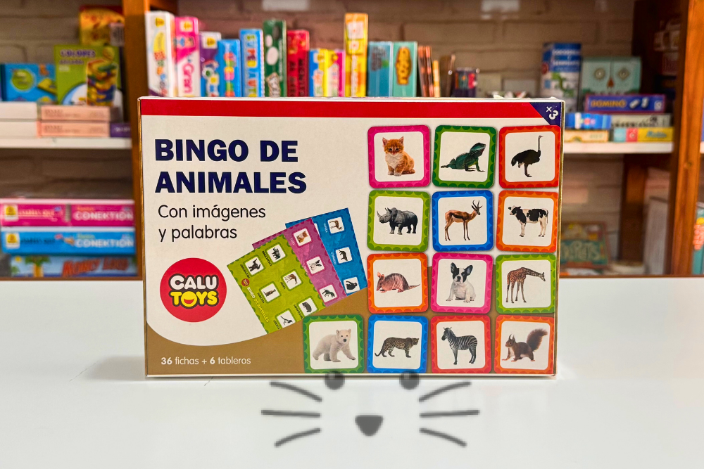 Este bingo familiariza a los niños con las imágenes y las palabras, aprendiendo nuevo vocabulario y reconociendo nuevos animales. Se reparten los 6 tableros entre los jugadores y se van sacando las 36 fichas de animales del interior de la caja. Gana el jugador que complete primero sus tableros. Incluye 36 fichas y 6 tableros. Edad Sugerida: a partir de 3 años