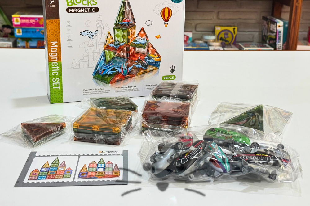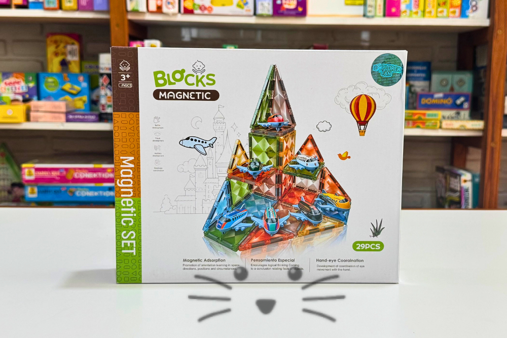 Descubrí la magia de construir y explorar con bloques magnéticos. Este set está diseñado para que los niños desarrollen su creatividad y habilidades motoras mientras arman divertidas construcciones mediante bloques magnéticos que se unen fácilmente. Fomenta el desarrollo del pensamiento lógico, la coordinación y la imaginación, convirtiéndose en una herramienta perfecta para el aprendizaje a través del juego. Contiene 7 modelos de aviones diferentes y 29 piezas magnéticas tipo vitro. Edad sugerida: a partir de 3 años en adelante.