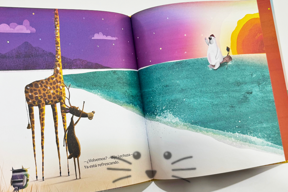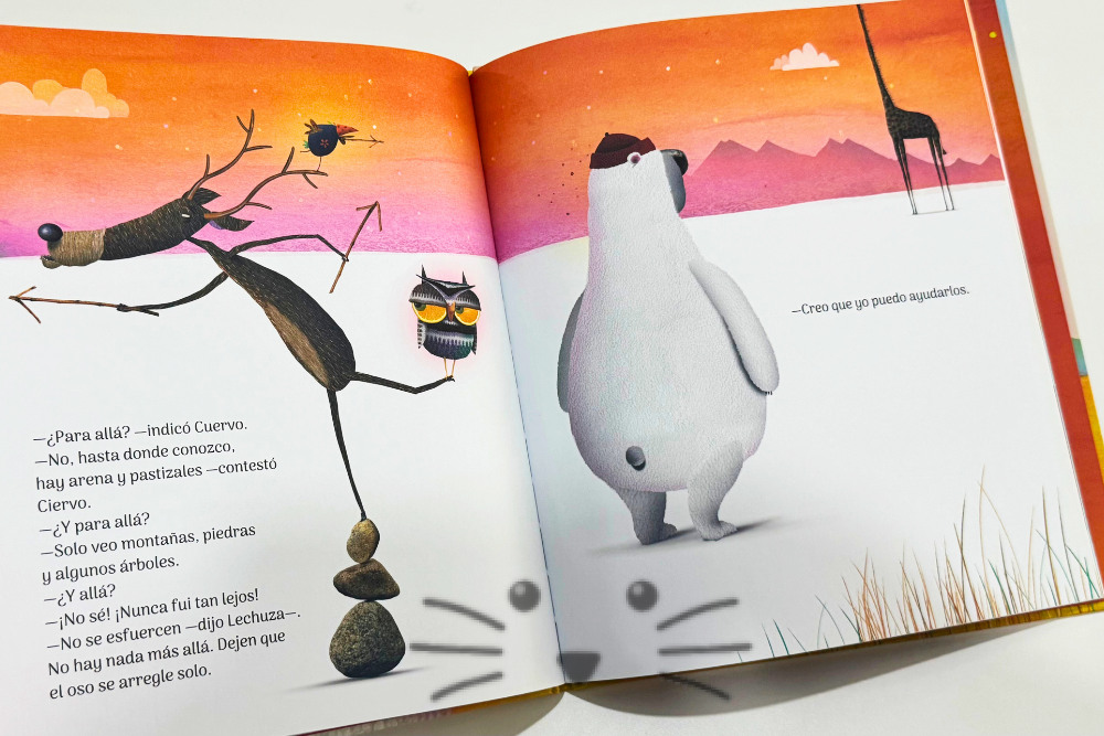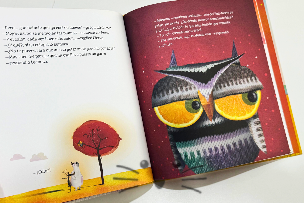 Oso está perdido y muy lejos de su hogar. Necesita regresar pronto, antes de que… ¿Se derrita? ¿Quién podrá ayudarlo? Quiere llegar al polo norte porque hace mucho calor, de hecho lo único que repite una y otra vez es la palabra calor mientras otros animales piensan en cómo ayudar al oso a llegar a su casa.