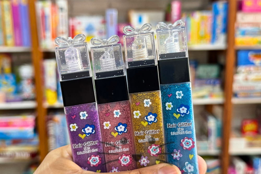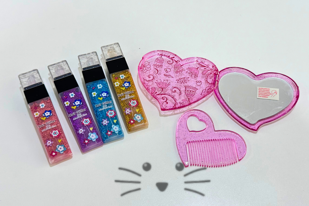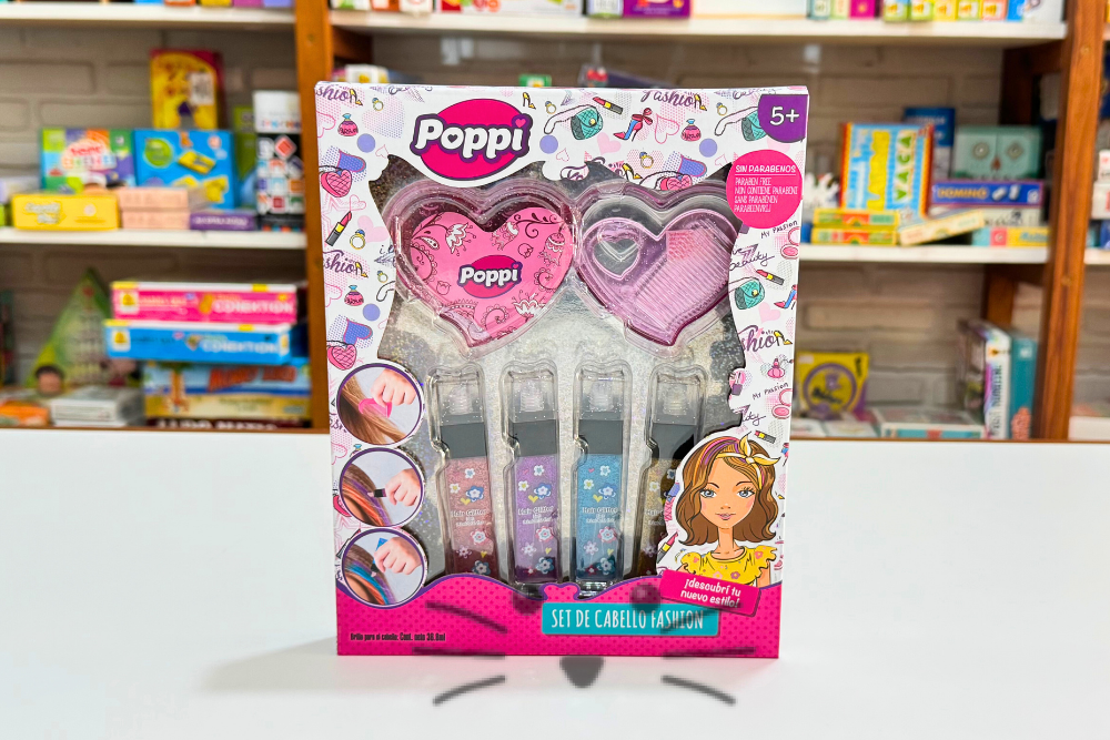 Divertite jugando con tu set de cabello y decoralo con tu color preferido. Es lavable. No tóxico. Incluye: 4 pomos de brillo de color para pelo, 1 espejo con tapa y 1 peine. Edad sugerida: a partir de 5 años en adelante.