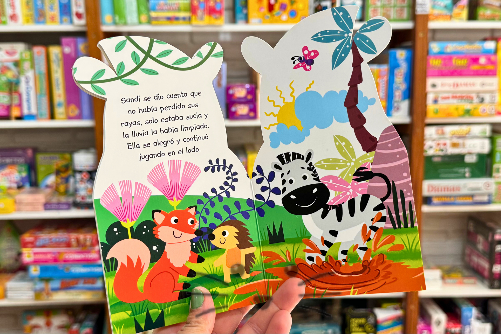 Libro de cartón con divertida y alegre historia con ojos móviles. ¡Ellos te están mirando! Ideales para pasar un rato divertido experimentando, relacionando y aprendiendo… Tapa e interiores en cartón plastificado. Contiene 10 páginas ilustradas a todo color. Medidas: 11 x 19 cm. Edad Sugerida: a partir de 2 años en adelante.