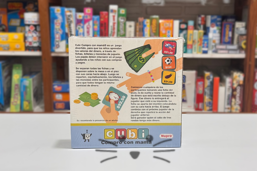 Juego educativo para aprender sobre el dinero. Fomenta el pensamiento estratégico y matemático. Incluye 48 fichas, billetes y monedas. Para 2 o más jugadores a partir de 4 años