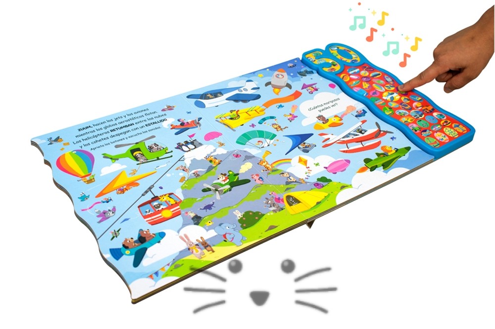 Este libro interactivo está diseñado para cautivar los sentidos de los más pequeños. Con 50 sonidos reales de vehículos, los niños podrán explorar cómo suenan autos, trenes, aviones, barcos, motocicletas y muchos otros medios de transporte que se mueven por tierra, aire y mar. Los pequeños lectores quedarán encantados al ver sus vehículos favoritos en plena marcha, acompañados de sonidos que dan vida a cada imagen. No solo es una fuente de entretenimiento, sino también una excelente herramienta para el aprendizaje temprano, ampliando el vocabulario y el conocimiento del entorno.