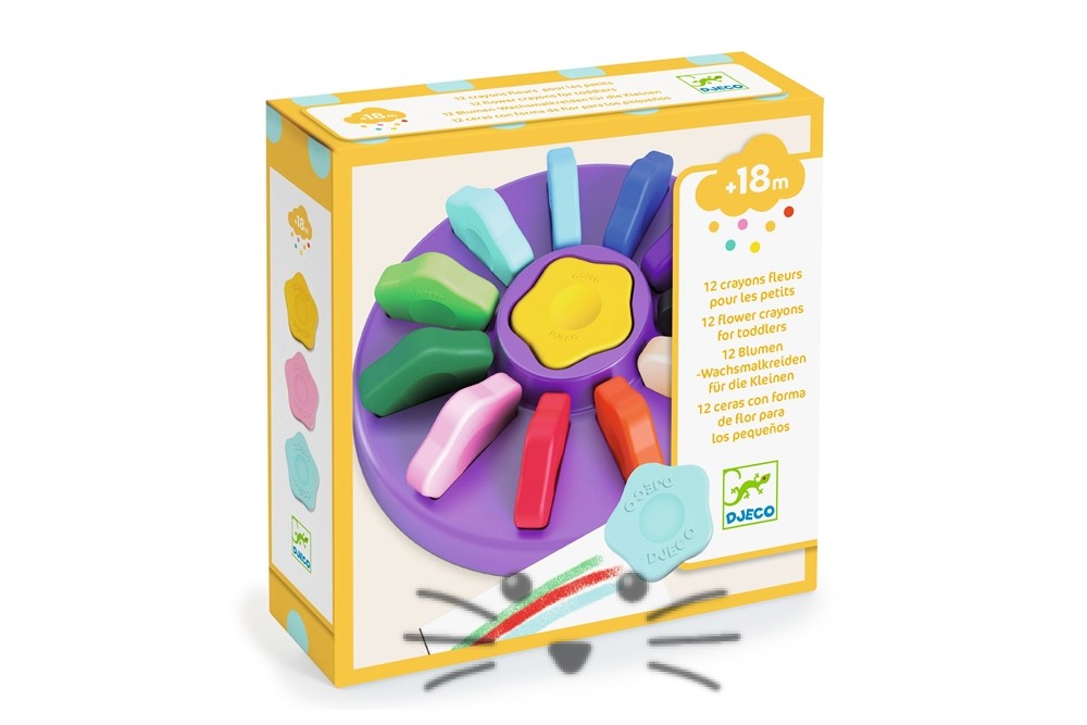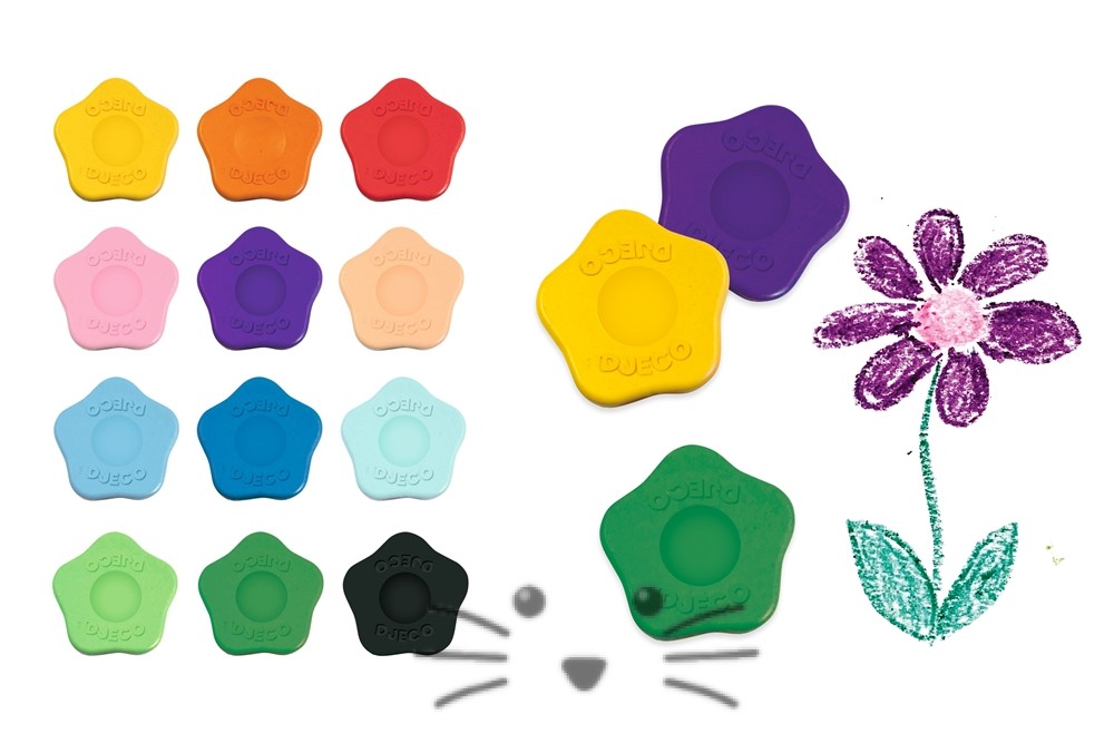 Los primeros lápices ergonómicos, con forma de flor, gruesos y fáciles de sostener en las manos de los más pequeños para hacer bonitos dibujos o colorear. Colores vivos y sólidos: marcan muy bien. No manchan. Contiene: 12 crayones con forma de flor en colores negro, amarillo, naranja, rojo, rosa, morado, gris, azul, azul oscuro, turquesa, verde y verde claro.
