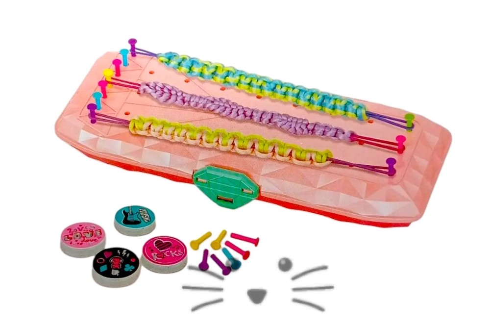 Divertite personalizando y luciendo tus propios diseños. Tiene todo lo que necesitas para crear brazaletes trenzados. Ideal para desarrollar la imaginación y habilidades de motricidad fina mientras se divierten. Edad Sugerida: a partir de 6 años en adelante.