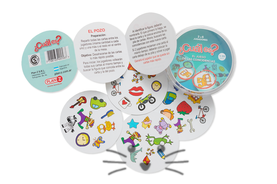 ¡A encontrar las coincidencias! Cada carta tiene 8 dibujos, pero solo uno coincide con alguno de las otras cartas ¿se animan a encontrarlos? Este juego ayuda a desarrollar habilidades cognitivas y rapidez visual.