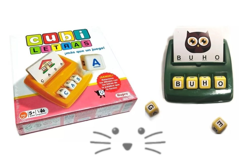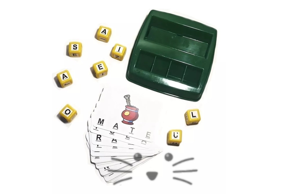 El objetivo del juego es asociar letras de los dados con letras de las figuras. Coloca una tarjeta en el portaobjeto y elije los dados con letras para formar la palabra correctamente. En los dados encontrarás todas las letras del abecedario. Contiene: 32 tarjetas con 64 figuras y palabras, 8 dados, 1 portatarjetas y stickers para los dados. Para 1 a 2 jugadores a partir de 5 años.