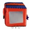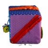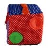 Este bonito Cubo aporta estímulos táctiles, visuales y sonoros al niño. Cuenta con una cara con un espejo, tres caras con «formitas» (triángulo, círculo y hexágono) con diferentes sonidos unidos al cubo por un cordón, dos de ellas tienen velcro y una un bolsillo para poder ser guardadas por el niño. Otra cara de cubo posee una manija y la ultima una textura sonora (al apretarla cruje).