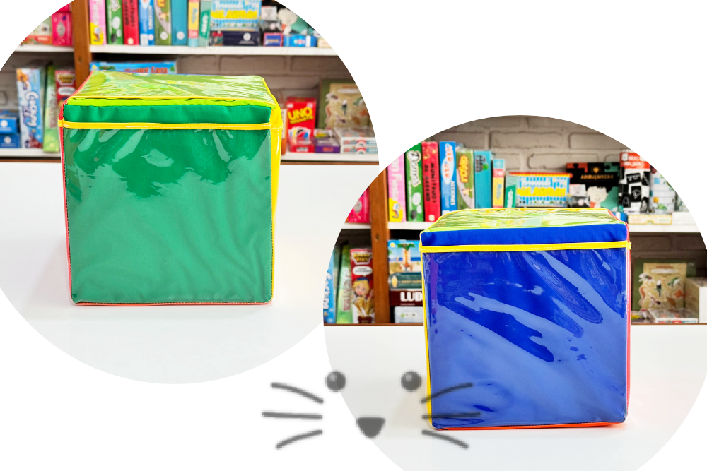 Material didáctico blando y versátil que invita a niños y niñas a explorar, observar y jugar. Cada cubo cuenta con bolsillos de PVC cristal en cada una de sus caras, que permiten colocar diferentes tarjetas, imágenes o cartas, ampliando las posibilidades de juego y aprendizaje.