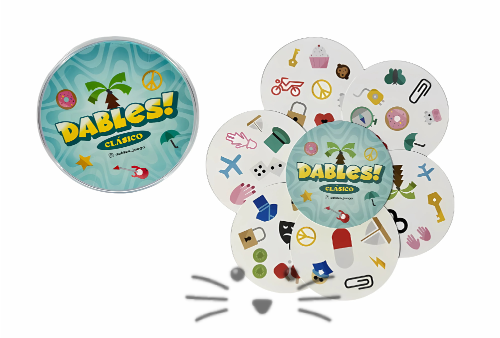 Juego de cartas que se basa en la velocidad, observación y reflejos, en el que los jugadores compiten por encontrar el símbolo que coincide entre las cartas. Con muchos símbolos y solamente uno idéntico entre cada carta. ¿Serás capaz de descubrirlo?