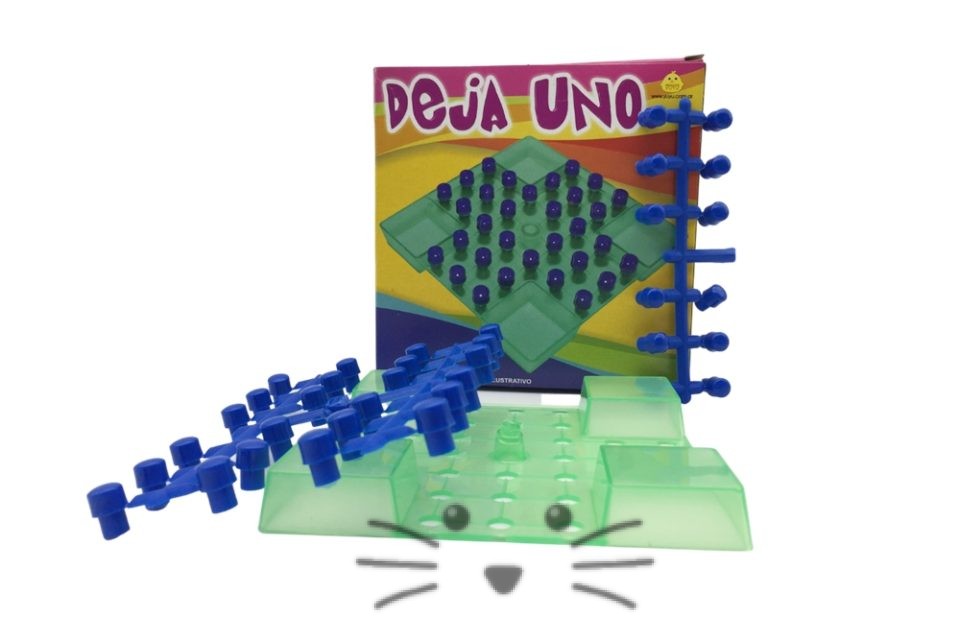 Mueve las fichas en dirección horizontal o vertical sobre cualquiera de las piezas que tenga un orificio libre alrededor para poder sacarla del tablero. Intenta dejar sólo una ficha en el tablero y serás el ganador. Incluye: 1 Tablero. 32 Fichas plásticas. Para un Jugador. Edad Sugerida: a partir de 6 años en adelante.