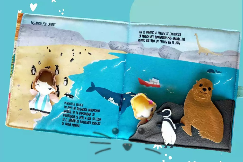Incluye: 2 personajes principales, 1 Guanaco, 1 Puma, 1 Mara, 1 Ballena Franca Austral, 1 Lobo marino y 1 Pingüino. Confeccionado en tela 100% poliéster. Lavable. Viene en caja de cartón. Medidas: cerrado 21 x 23 cm, abierto 42 x 23 cm. Edad Sugerida: a partir de 5 años en adelante.