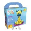 Masa para modelar con simples indicaciones ilustradas. Aroma agradable. Textura Suave. No mancha. No tóxica. Incluye :3 paquetes de 70 gr cada uno. 210 gr. en total. Colores primarios (rojo, amarillo y azul) que se pueden combinar para obtener más colores. Cuadernillo con indicaciones e ilustraciones para hacer paso a paso la jirafa. 1 pliego de cartulina con 4 pares de «ojos». Bolsita para guardar la masa. Edad Sugerida: a partir de 3 años.