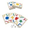 Las cartas tienen en cada lado una figura central, y en cada esquina hay una figura cortada. En este juego no hay turnos, todos juegan al mismo tiempo. Se reparten todas las cartas entre los jugadores. Se pone una carta en el centro y ¡comienza el juego! Deberás encontrar entre todas tus cartas una figura cortada que coincida en forma y color con la figura central de la carta del pozo. Cuando la encuentres, tendrás que apoyar la carta rápido sobre la que está en la mesa antes de que alguien lo haga antes que vos y te cambie la figura central. ¡El objetivo del juego es quedarse sin cartas! Las cartas no tienen orden. Siempre hay que buscar entre todas las cartas que tengas en la mano.