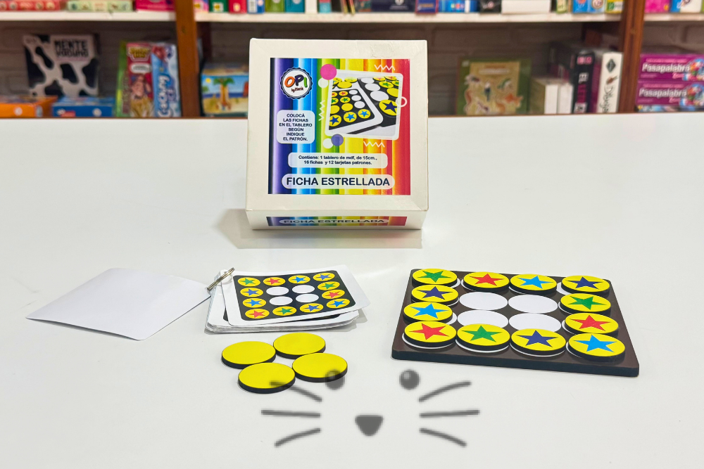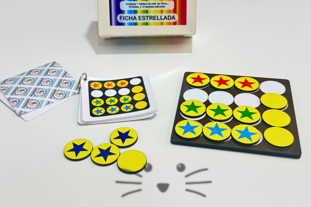🎯 Habilidades que estimula: Atención y concentración. Discriminación visual de colores y formas. Razonamiento lógico y seguimiento de patrones. Memoria visual y planificación