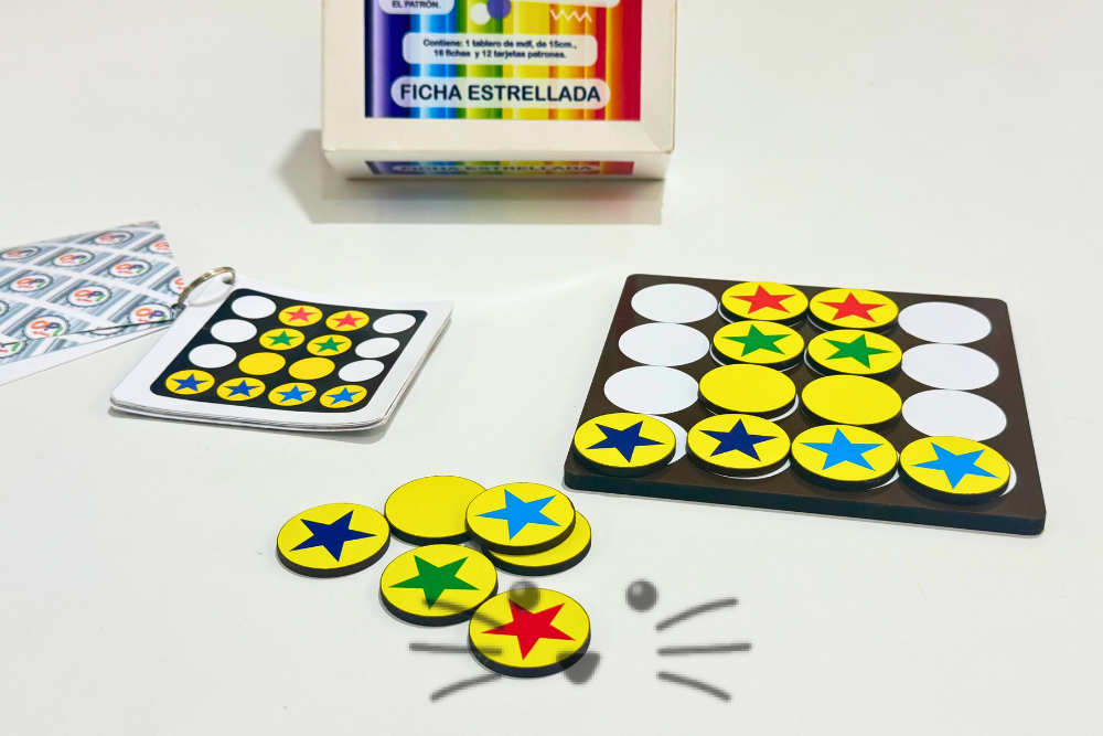 Un material didáctico pensado para desarrollar la atención, la memoria visual y el razonamiento lógico a través del juego con colores y patrones. Ideal para propuestas de estimulación cognitiva en el aula, en terapias o en casa.