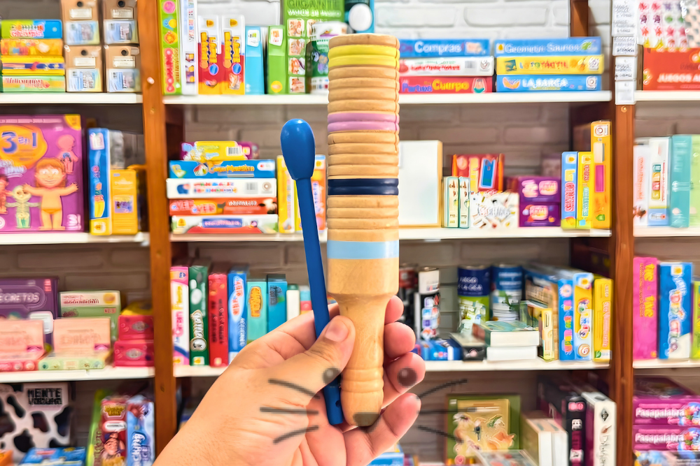 🎯 Favorece: Desarrollo del sentido rítmico. Coordinación mano-ojo. Discriminación auditiva. Atención y secuenciación. Expresión corporal y creatividad. Estimula la exploración auditiva y el juego musical. Medidas: 20 cm de largo x 4 cm de diámetro. Edad Sugerida: entre 4 y 6 años.