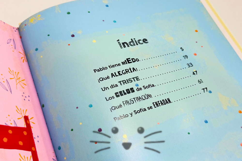 La gestión de las emociones es clave para acompañar el crecimiento de un niño. Este libro invita al adulto a ser un guía cercano y observador, acompañando desde el mundo infantil de Sofía y Pablo, dos hermanos que, junto a sus padres, enfrentan distintas situaciones del día a día. Emociones como la tristeza, los celos, la alegría, el enfado, la frustración y el amor se presentan aquí de forma visual, atractiva y tierna, creando el espacio ideal para ayudar a los pequeños a reconocer y comprender sus propios sentimientos.