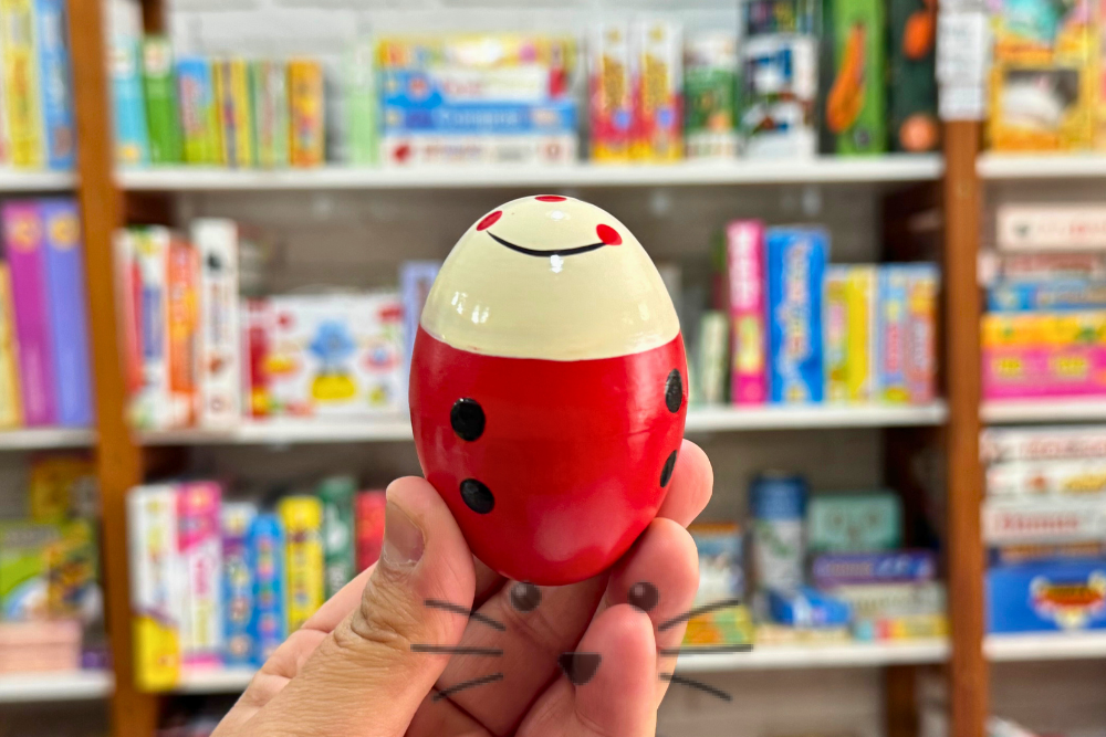 Huevito de madera relleno de arena para sacudirlo suavemente y producir sonidos agradables. Medidas: 7x5x5 cm. Edad Sugerida: entre 4 y 6 años.