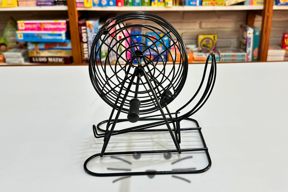Clásico juego en el que los participantes disponen de cartones con números, que van marcando según coinciden con los que salen del bolillero. Gana el jugador que antes consigue completar los números de su cartón. Contiene: 1 Bolillero metálico, 90 Bolillas numeradas, 40 cartones numerados reusables, 1 portabolillas y 150 Fichas marcadoras. Medidas del bolillero: 15 cm de alto x 19 cm de diámetro. Edad Sugerida: a partir de 8 años