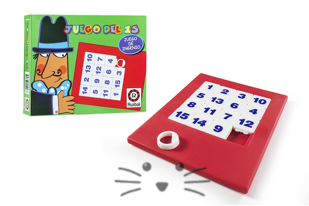 Un divertido juego que pone a prueba tu ingenio. ¿Podrás ordenar las fichas del 1 al 15? Contiene: 1 base plástica, 15 fichas plásticas y 1 aro fijador. Para 1 jugador. Edad Sugerida: a partir de 7 años.