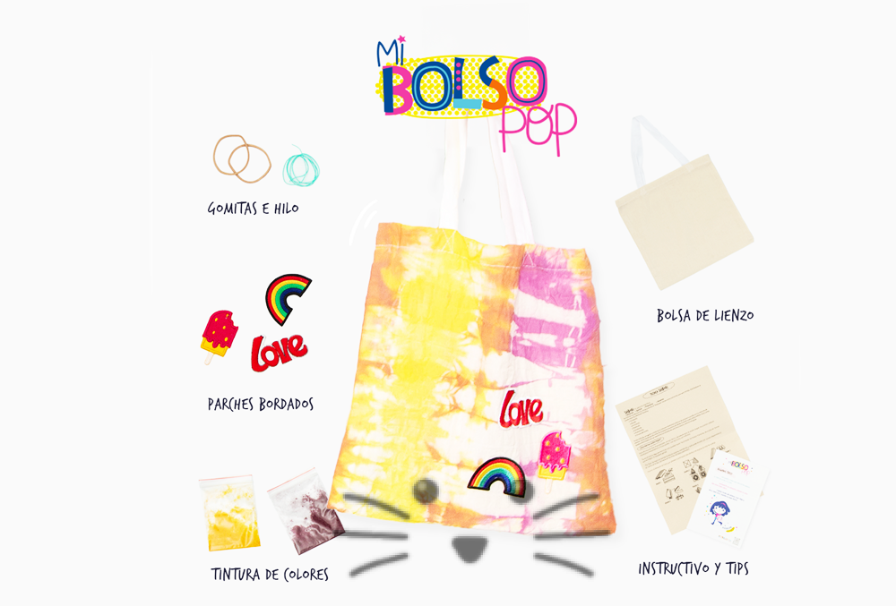 Con este kit vas a poder crear y diseñar tu propio bolso, para llevarlo con vos a todos lados. Incluye: bolso de tela, 2 Anilinas de colores, parches termoadhesivos, plantilla con instrucciones de teñido, hilo encerado y 2 bandas elásticas. Medidas Bolso: 30 cm alto x 30 cm de largo. Edad sugerida: a partir de 4 años en adelante.