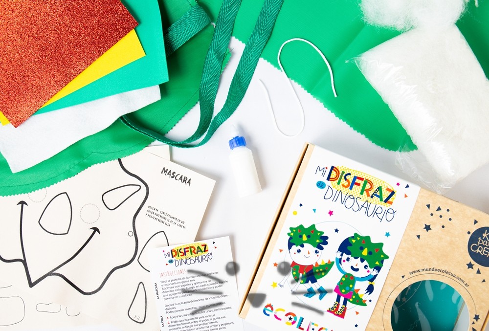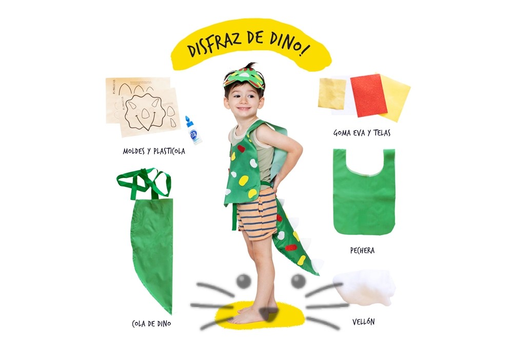 Con este kit vas a poder crear y diseñar tu propio disfraz y convertirte en un asombroso y único dinosaurio. Incluye: cola de tela, pechera para decorar, relleno, plantillas para hacer máscara y formas para recortar, pegamento, goma eva lisa y con glitter e instrucciones. Medidas: Cola de dino : 45 cm largo. Pechera: 36 cm de largo x 27cm de ancho. Edad sugerida: a partir de 4 años en adelante.
