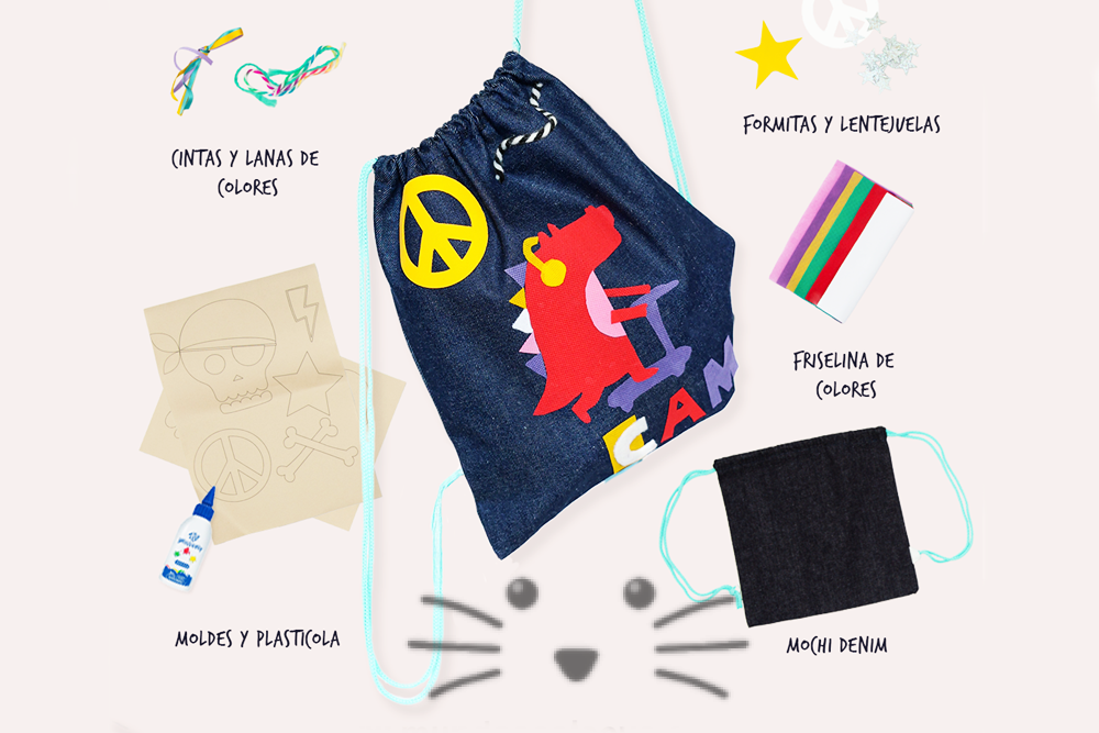 Con este kit vas a poder crear y diseñar tu propia mochila, para que te acompañe en tus aventuras. Incluye: mochila de jean, telas de colores, figuras de goma eva, lanas de colores y cintas y pegamento. Medidas Mochila: 30 cm largo x 30 cm de alto. Edad sugerida: a partir de 4 años en adelante.