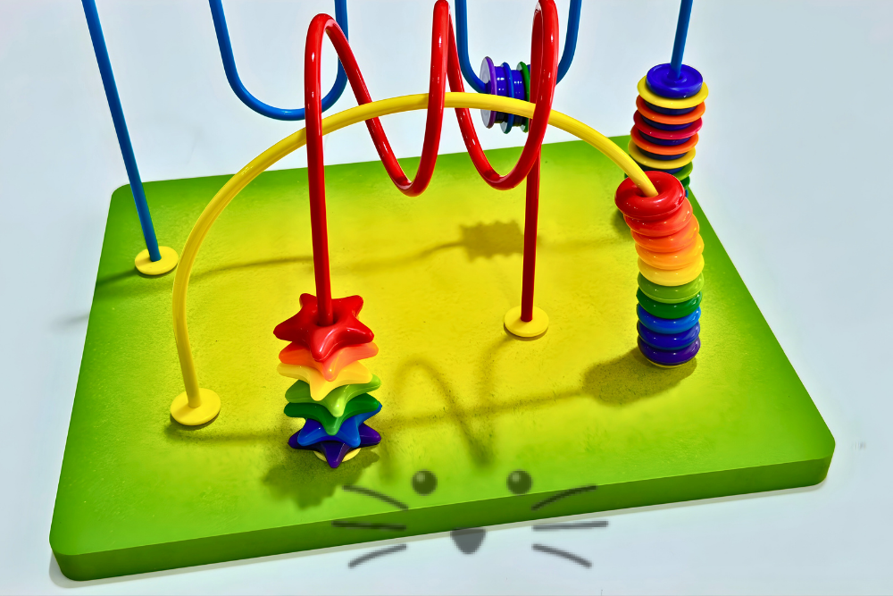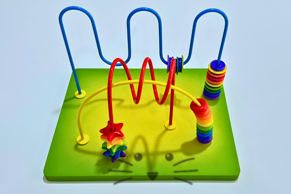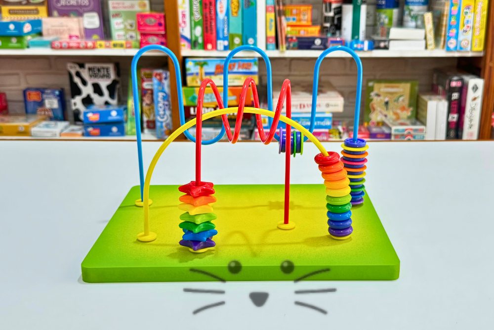 Un material didáctico completo que invita a explorar, mover, contar y descubrir. Este laberinto mixto de motricidad combina diferentes recorridos con piezas de colores que se deslizan a lo largo de vías metálicas, permitiendo trabajar el movimiento de manos, la coordinación y el reconocimiento de cantidades.