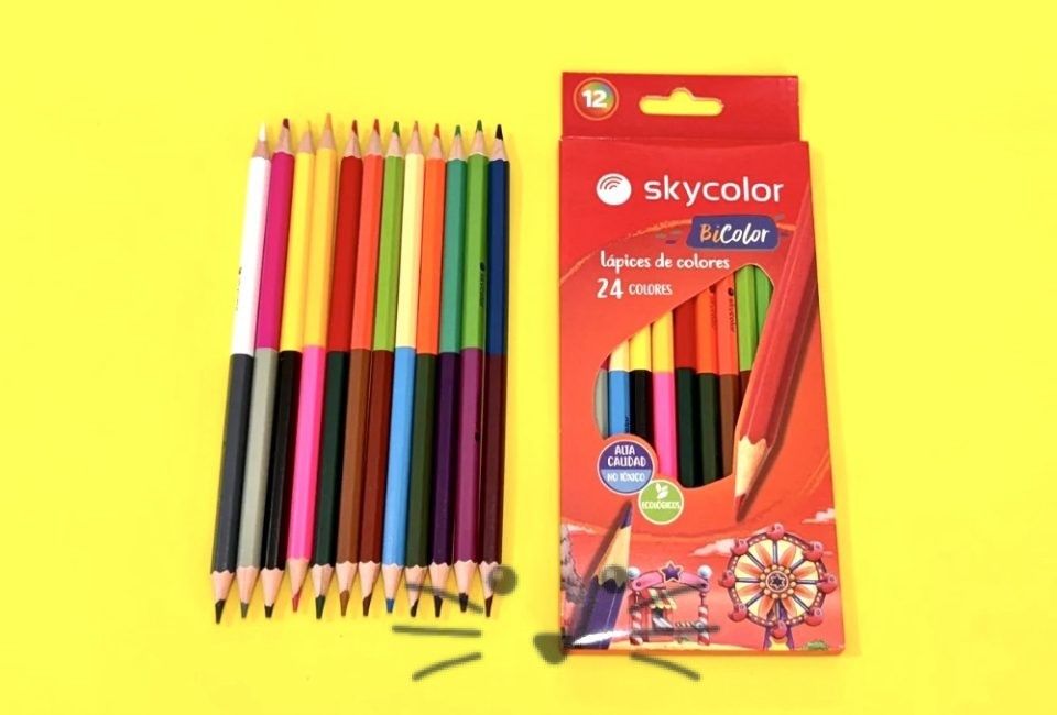 Lápices de Colores Clásicos Bicolor. Contiene un total de 24 colores. Calidad Premium. No tóxicos. Ecológicos. Edad Sugerida: 3 años en adelante.