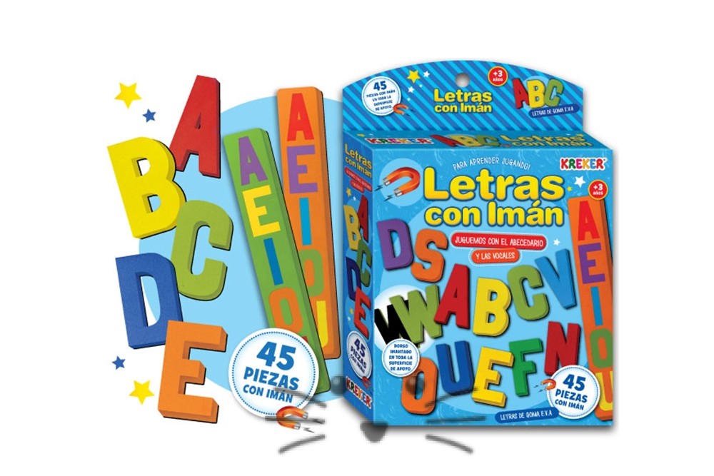 Para aprender jugando con las letras. Contiene 45 piezas de goma eva con imán en toda su superficie. Ideales para pizarras magnéticas. Edad Sugerida: a partir de 5 años en adelante.