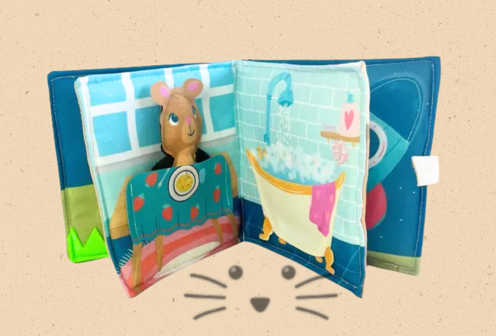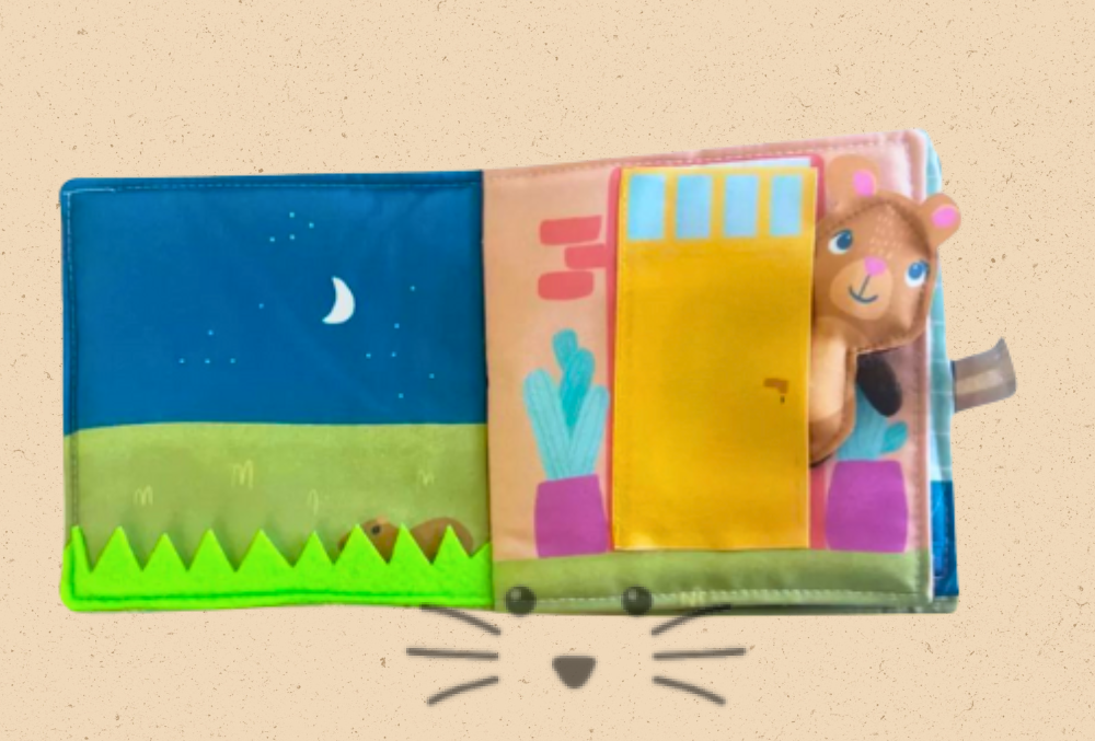 Libros de tela con escenas para pasar un rato juntos e inventar cuentos. Estimula a los niños a adquirir habilidades cognitivas y emocionales como la memoria, incremento del vocabulario, incorporación de valores, desarrollo de autoestima y confianza. Cada libro contiene 6 páginas con diferentes escenas de juego. Incluye un osito protagonista y las escenas: jugar en el jardín, entrar en casa, cenar, bañarse, acostarse y soñar. No contiene piezas sueltas. Confeccionado en tela 100% poliéster. Lavable. Medidas: cerrado 15×15 cm, abierto 15×30 cm. Edad Sugerida: a partir de 6 meses en adelante.