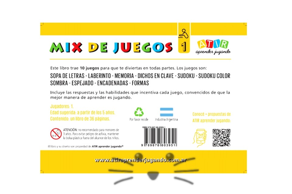 Juegos: Sopa de letras – Laberinto – Memoria – Dichos en claves – Sudoku de números – Sudoku de colores – Sombras – Espejado – Palabras encadenadas – Formas. Incluye el instructivo con las habilidades que incentiva cada juego convencido que la mejor manera de aprender es jugando.
