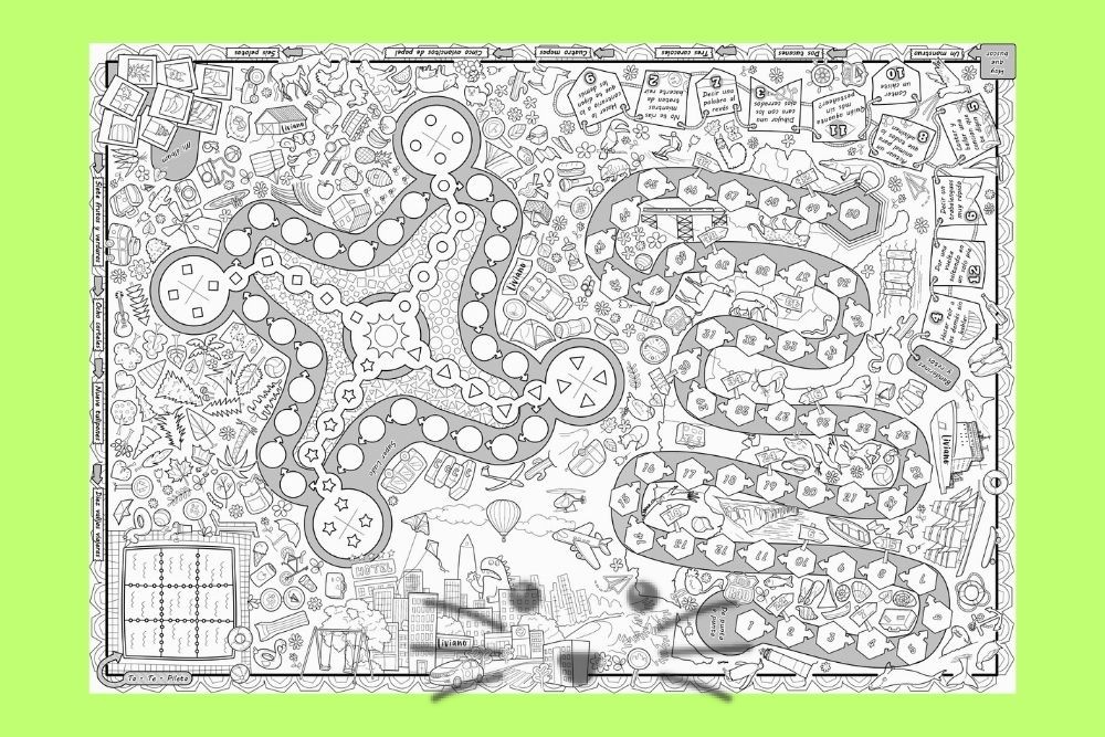 Ilustrada con un mapa con división política y muchísimos de los atractivos de nuestro país: paisajes, íconos, animales, turismo. Encontralos! Además es un tablero gigante con nuestras versiones de juegos clásicos 7 en 1 con instrucciones: Ludo, Tateti, Buscar y Encontrar, De punta a Punta, Prendas, Juego de Memoria. Una original lona de tela de papel para pintar, lavar y volver a colorear, súper resistente. Viene en caja con 16 fichas de madera para pintar, 2 dados y 6 marcadores. Medida 100 x 70 cm. Edad Sugerida: 3 a 99 años. (Aunque quien más lo va a usar es 5 a 12 años)