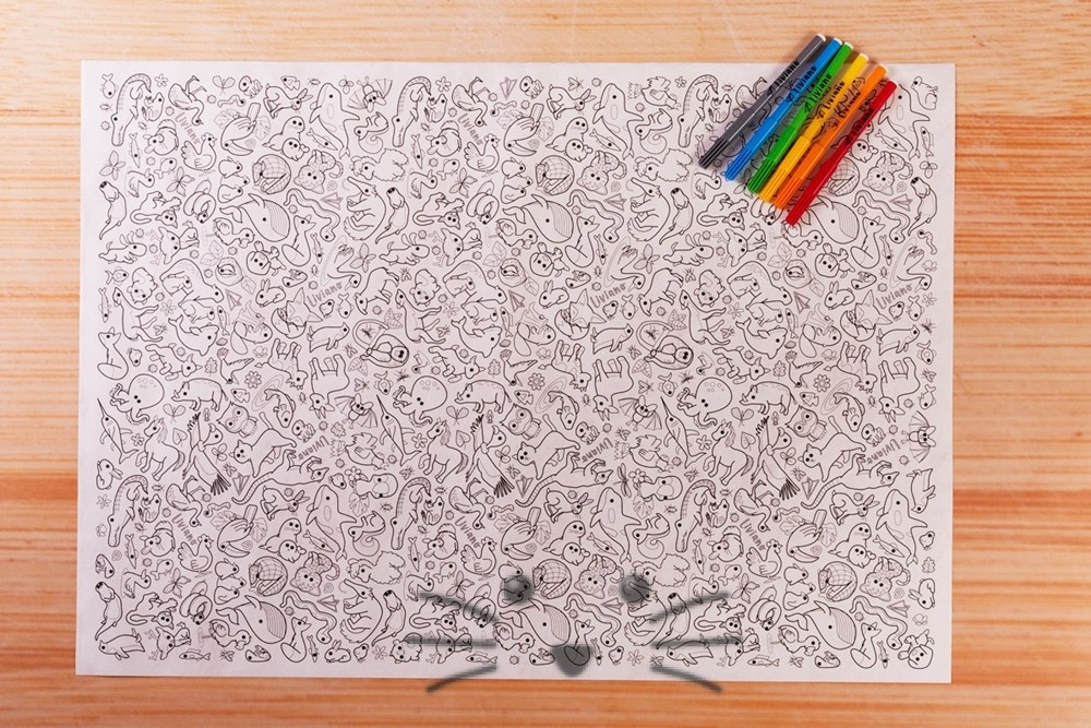 Una hermosa lonita con mucho para pintar, lavar y volver a colorear. De tela de papel súper resistente. Medidas: 45 x 65 cm. Presentación: Pote cristal con tapa blanca reutilizable. Incluye 6 marcadores. Edad Sugerida: 3 a 12 años