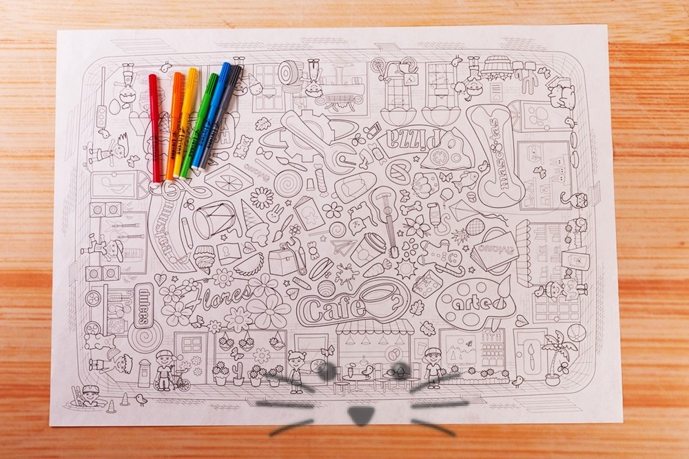 Una hermosa lonita con mucho para pintar, lavar y volver a colorear. De tela de papel súper resistente. Medidas: 45 x 65 cm. Presentación: Pote cristal con tapa blanca reutilizable. Incluye 6 marcadores. Edad Sugerida: 3 a 12 años