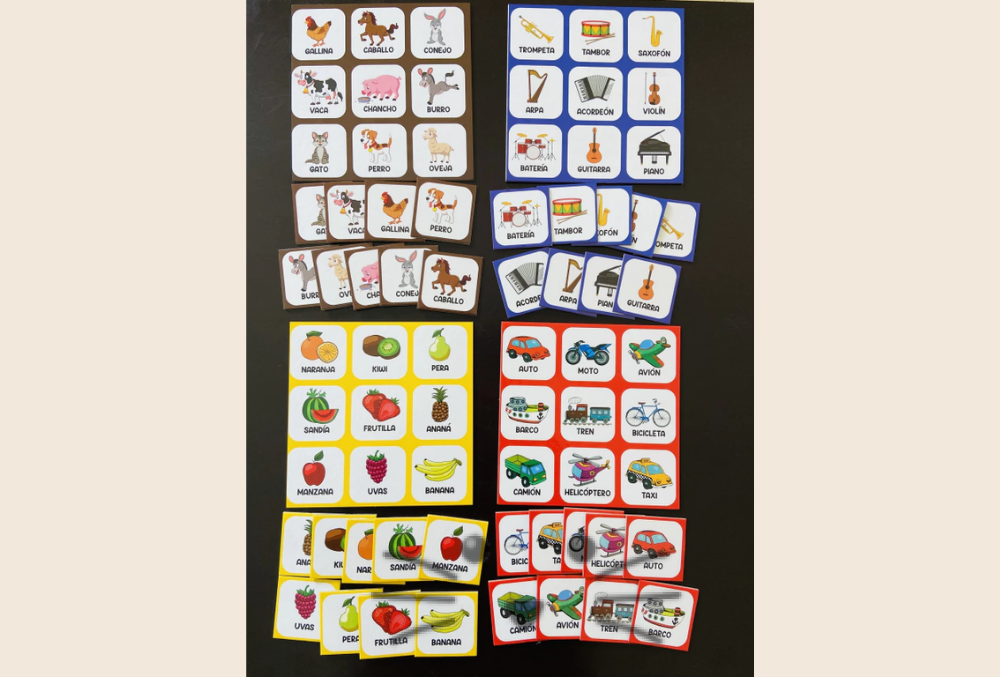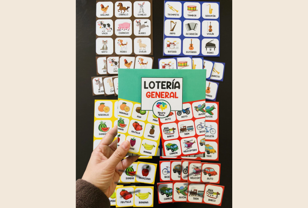 Una lotería pensada para jugar, aprender y estimular el lenguaje desde los primeros años. Incluye 4 categorías: Animales de la granja, Frutas, Transportes e Instrumentos. Ideal para desarrollar vocabulario, atención, memoria visual y habilidades sociales, mientras los chicos se divierten reconociendo y nombrando imágenes.