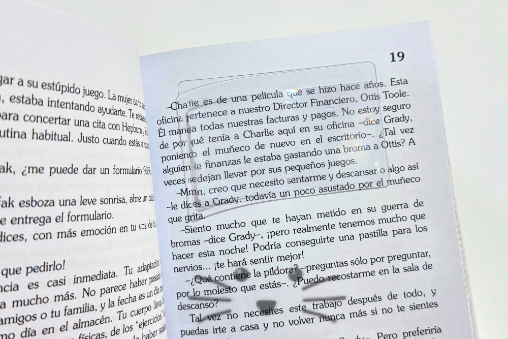 Una herramienta práctica y liviana que facilita la lectura ampliando textos de forma clara y cómoda. Su diseño plano tipo tarjeta permite colocarla directamente sobre el libro, revista o documento, ampliando las letras sin necesidad de sostener una lupa tradicional. Ideal para niños en proceso de lectura, estudiantes y personas que necesiten apoyo visual.