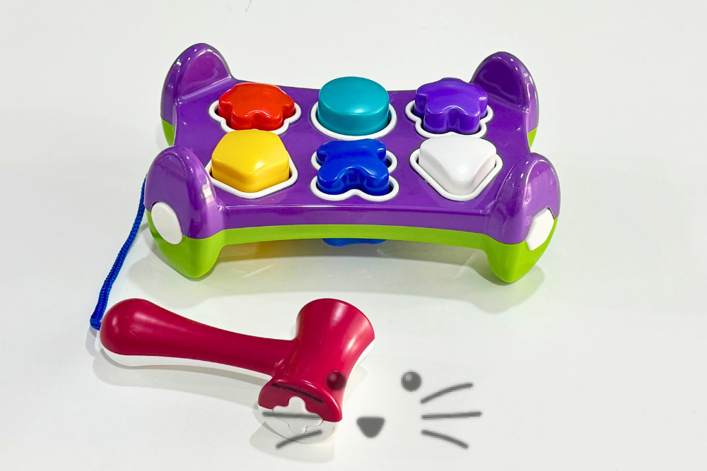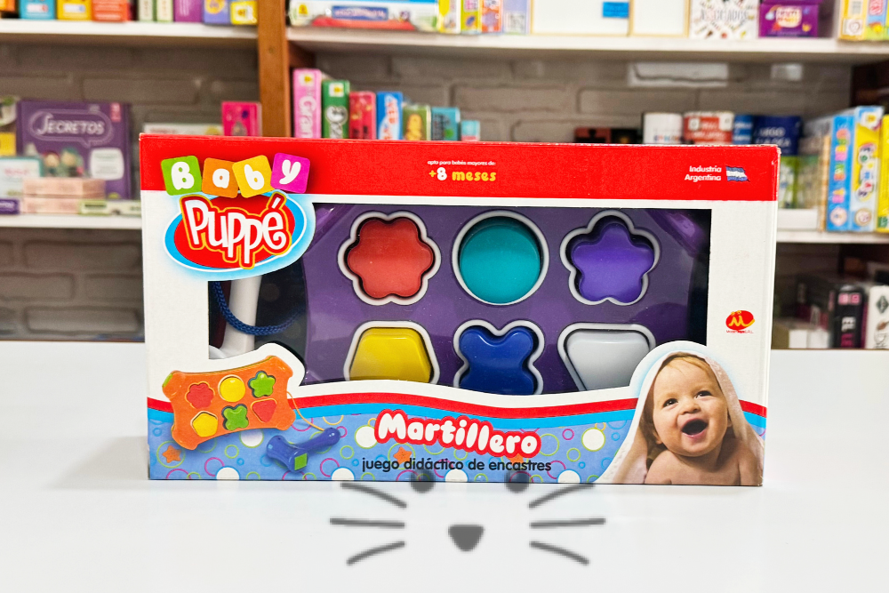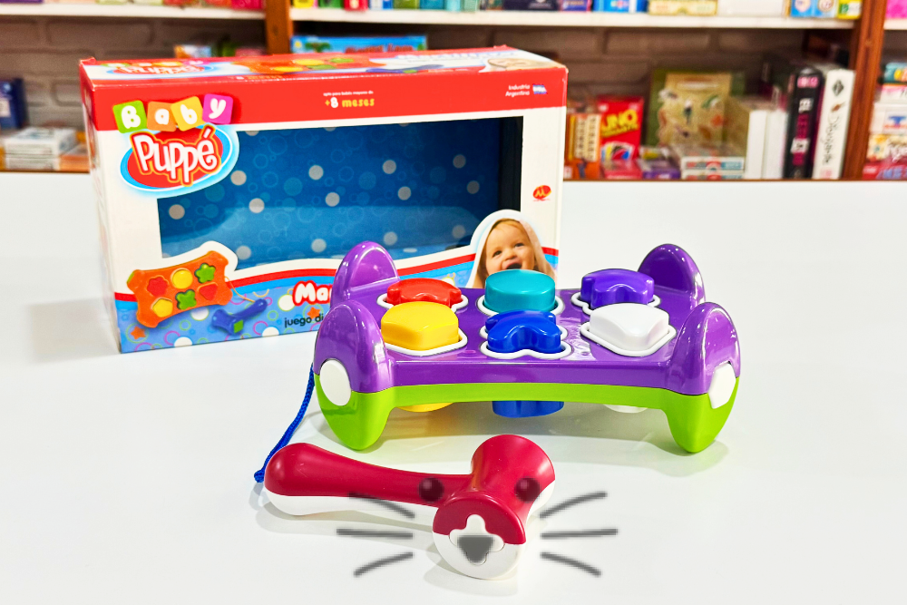 Desarrolla la motricidad y el reconocimiento de formas, colores y volúmenes. Favorece el aprendizaje cognitivo y la coordinación de movimientos. Contiene banco de descarga, 6 piezas para encastrar y martillo. Ideal para bebés de 8 meses en adelante. Medidas: 21 cm de largo x 14 cm de ancho x 7 cm de alto